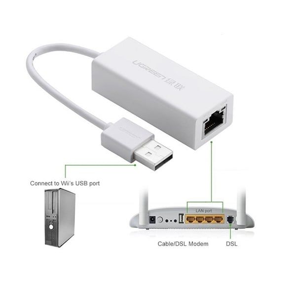 Dây Cáp Chuyển USB Sang Cổng LAN 2.0 Ethernet 10/100 Mbps Ugreen 20253 là giải pháp mở rộng, thêm 1 cổng LAN tốc độ cao Gigabit cho các dòng máy này.